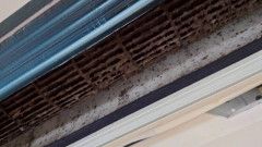 冷氣專業保養案例。這組國際牌 (Panasonic) 分離式冷氣在專業清洗前後的巨大差異